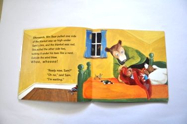It was a dark and stormy night in Plum street. In the little white house Mrs. Bear was putting Sam to bed. "Ready now, Sam?" she asked. "Oh no" said Sam. "I'm waiting". What can he be waiting for?